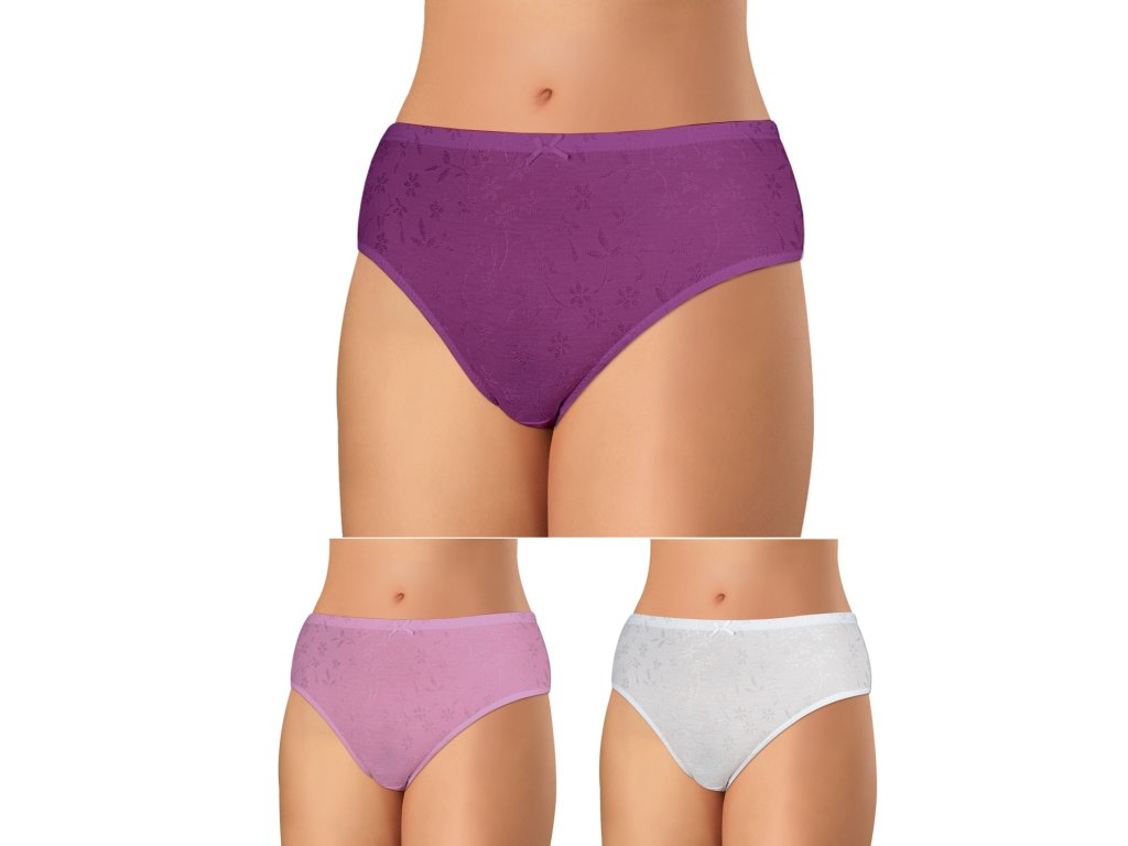 Sada 3 ks (bílá, fialová, růžová) dámských kalhotek Andrie s vyšším bokem z kvalitní bavlny, polyamidu a elastanu.