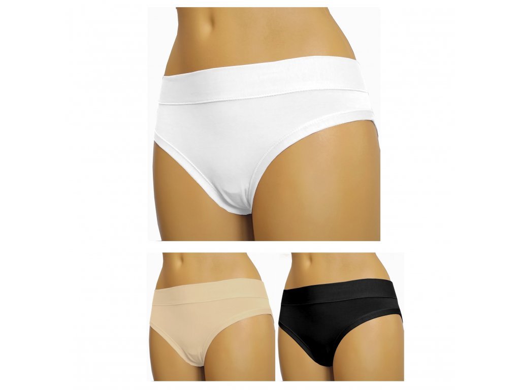 Sada 3 ks (bílá, černá, tělová) dámských kalhotek Andrie s širokým pasem z kvalitní bavlny, tactelu a elastanu.