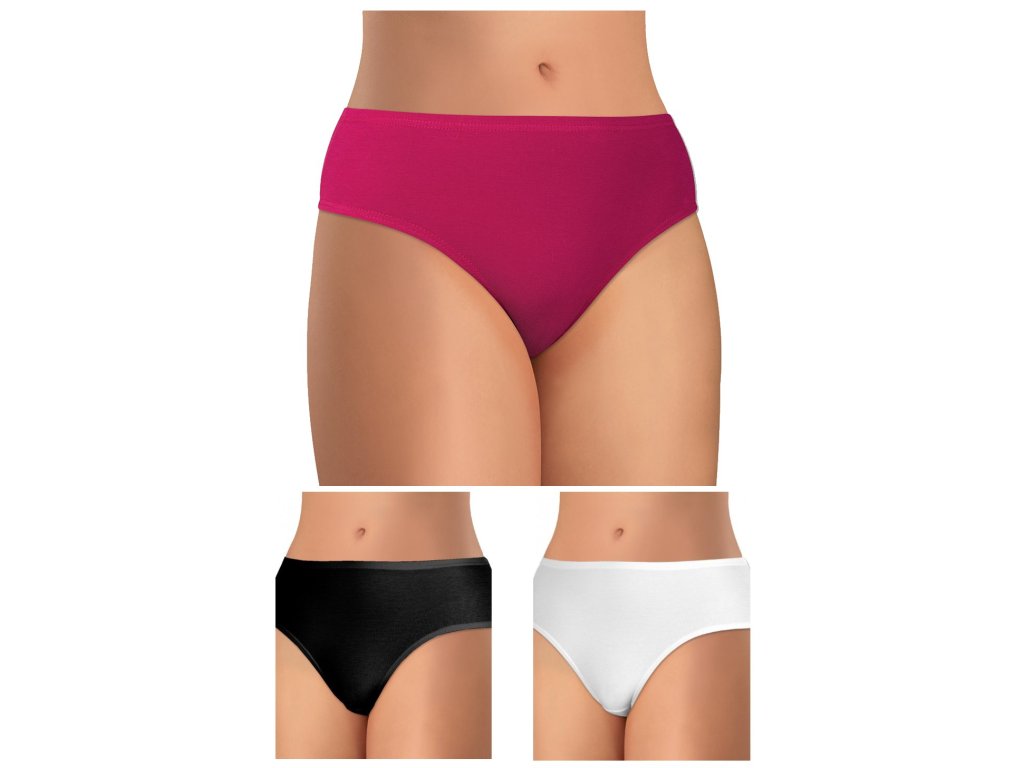 Sada 3 ks (bílá, černá, vínová) dámských hladkých kalhotek Andrie s vyšším bokem z kvalitní bavlny, tactelu a elastanu.