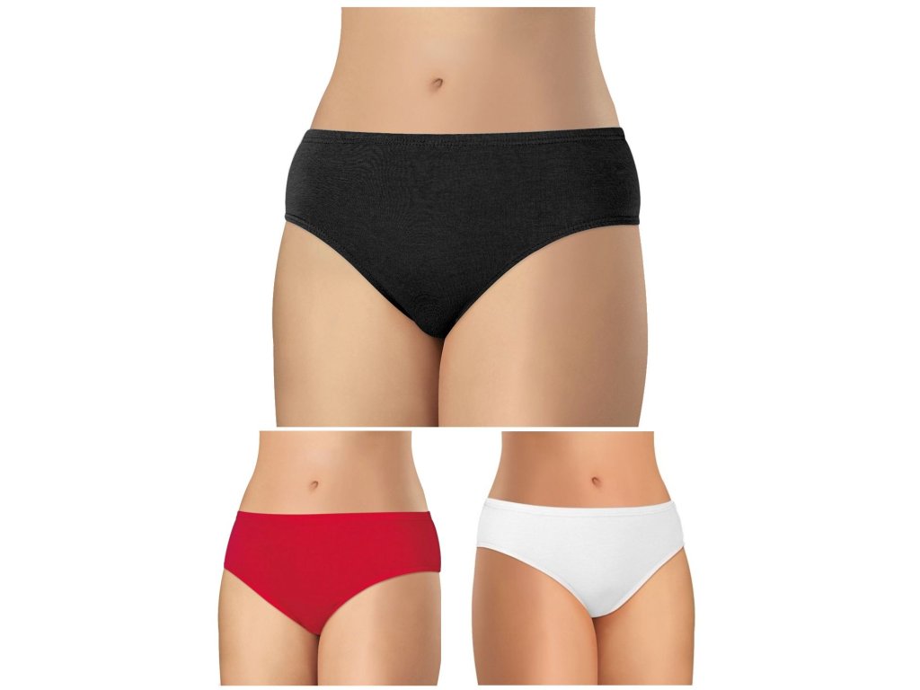 Sada 3 ks (bílá, černá, červená) dámských hladkých kalhotek Andrie s vyšším bokem z kvalitní bavlny, tactelu a elastanu.