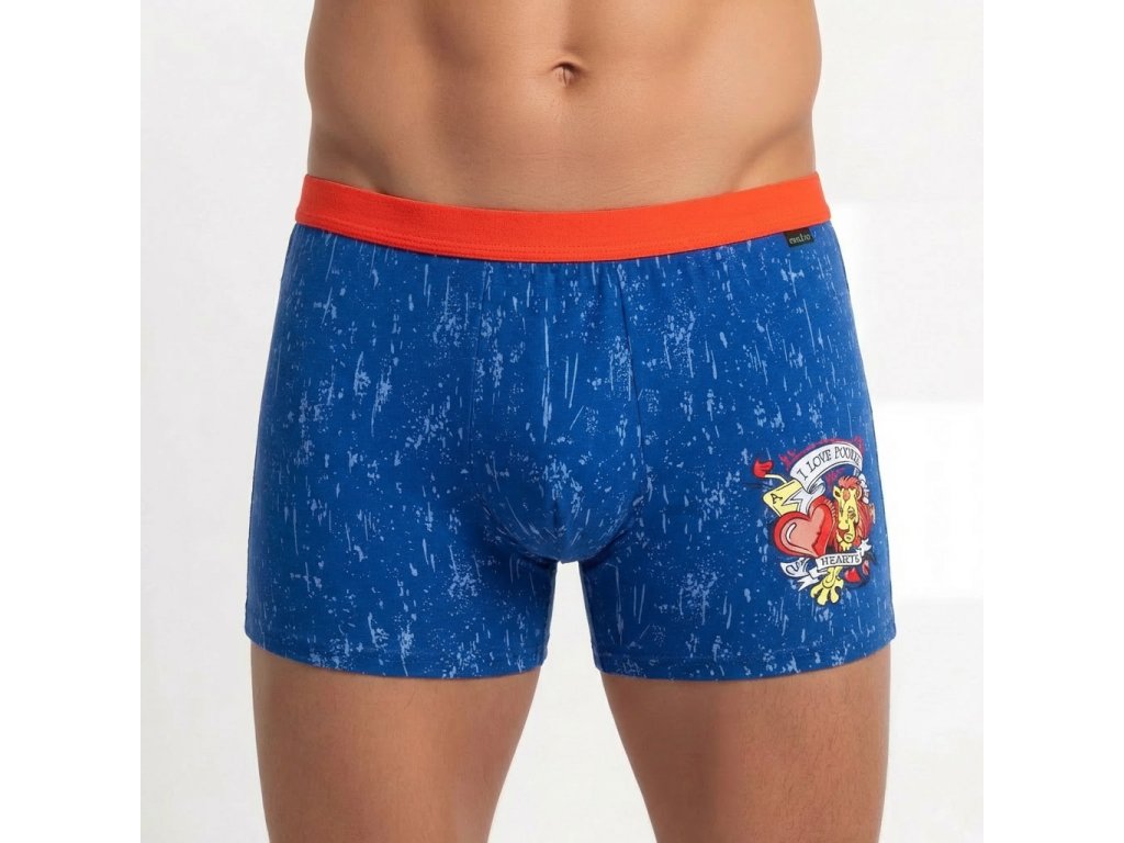 Orel, býk, lev nebo jednorožec dominují levé nohavičce na vzorovaných pánských boxerkách s barevně odlišným pasem. Jsou vyrobeny z materiálu bavlna, elastan.