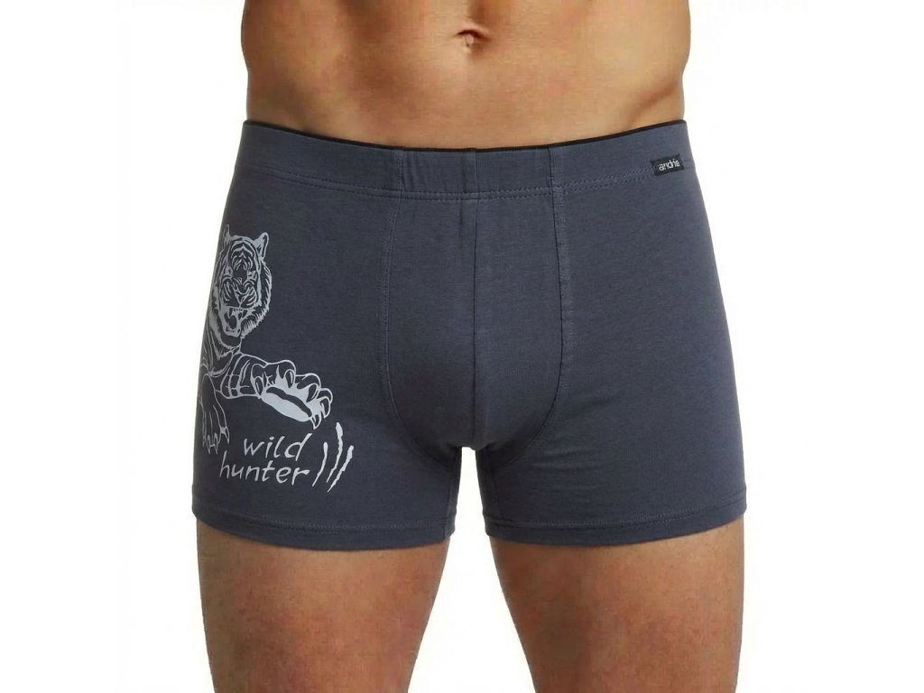 Pánské boxerky od značky Andrie mají na pravé nohavičce vyšitý obrázek lovícího tygra. Pro jejich výrobu byla použita bavlna, která je velmi příjemná na dotek, umožňuje pokožce dýchat a je vhodná i pro osoby s citlivou pokožkou nebo alergiky. Lehká příměs lycry zajistí větší pružnost a odolnost, takže boxerky se lépe přizpůsobí tvaru postavy a zároveň déle vydrží.