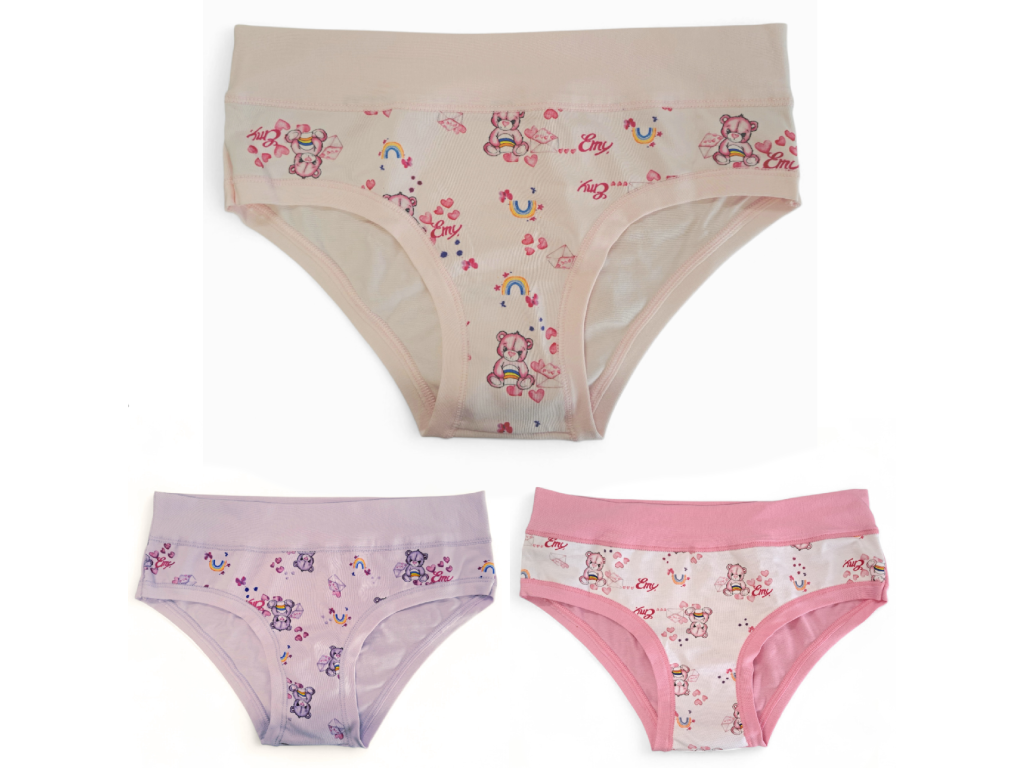Souprava 3 ks dívčích kalhotek. Oblíbené spodní prádlo pro malé i dospívající slečny v krásných pastelových barvách a v perfektním střihu bez gumiček.