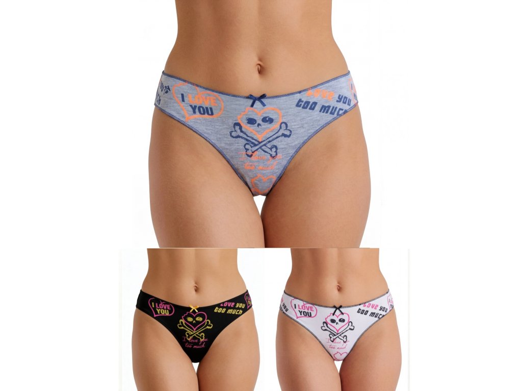 Sada 3 ks (bílá, černá, šedá) dámských tang. Lásku až za hrob značí velké srdce se zkříženými hnáty na dámských tangách Lovelygirl. Možná jsou určena právě tobě!